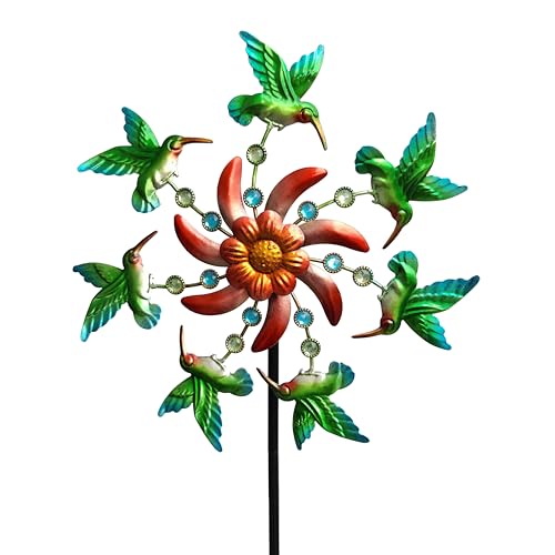 COOZZYHOUR 39" Hummingbird Wind Spinner for Yard and Garden Stake,Outdoor Metal Windmill Single Direction Wind Sculptures Kinetic Windmills for Yard Garden Decorations