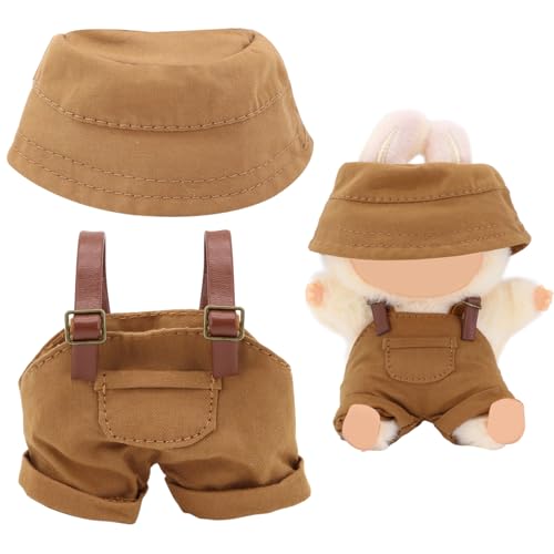 15cm-17cm Dolls Clothes with Adjustable Belts & Cute Hat, Summer Overalls Outfits for 17 CM Doll, Cute Fashion Clothing Set for Have a Seat Doll Daily Wear