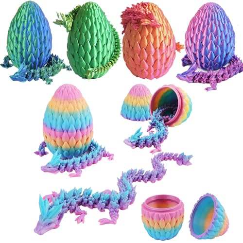Qxbuhe 12inch 3D Printed Dragon Egg,Mystery Crystal Dragon Fidget Toys,Articulated Dragon,Home Desk Decor Easter Surprise Dinosaur Eggs,Adults Fidget Toys for Autism/ADHD (Rainbow)