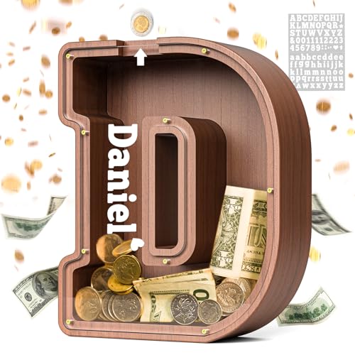 Summidate Wooden Letter Piggy Bank, Extra Thick Large Capacity Piggy Bank for Kids Boys Girls Toddler, Alphabet D Money Bank| Coin Box Birthday, Christmas, Festival