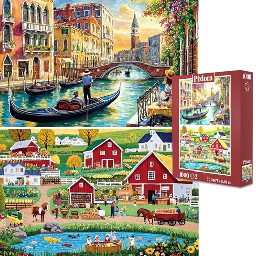 Pixlora Puzzles for Adults 1000 Pieces, 2 Pack Landscape Puzzles, Jigsaw Puzzles 1000 Pieces, Impossibly Puzzle Highly Challenging Family Puzzle, A Bustling Cityscape and a Picturesque Countryside