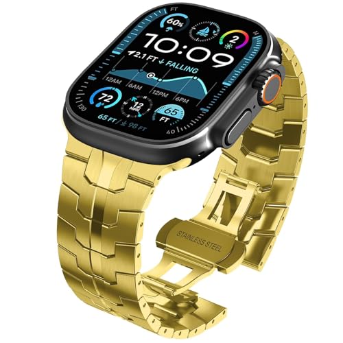 WINGLE Stainless Steel Bands for Apple Watch Band Ultra 3/2/1 Band Ultra 49mm Series 11 10 46mm 45mm 44mm 42mm SE 3/2/1 Series 9 8 7 6 5 4 3 2 Men, Classy Business Rugged Metal iWatch Bands, Gold