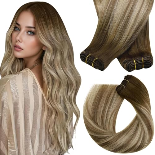 Sunny Hair 120g Weft Hair Extensions Human Hair 20inch Sew in Human Hair Extensions Dark Brown Ombre Light Brown Balayage Blonde Sew in Hair Extensions Real Human Hair Full Head Thickness 20inch
