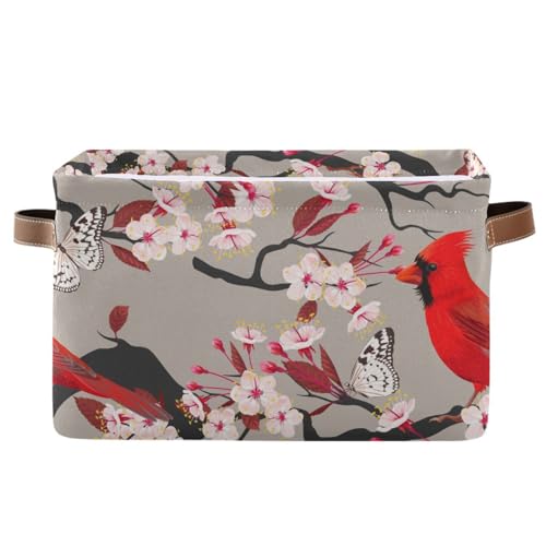 Aslsiy Storage Basket Cardinal Blooming Cherry Nursery Bins Butterfly Baby Box Canvas Clothes Shelf Basket Laundry Hamper Gift Basket for Home Closet 1 Pcs