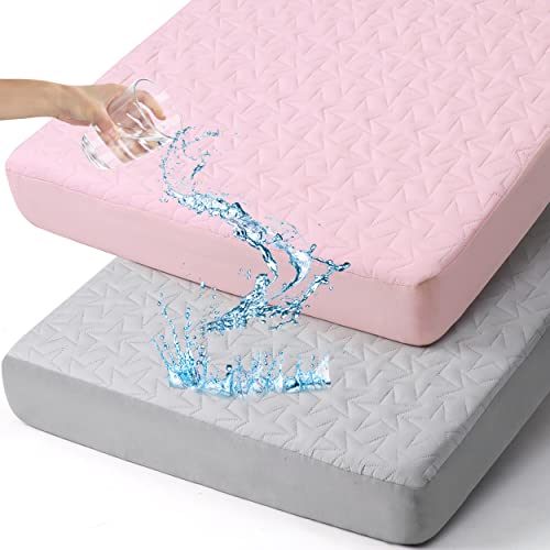 Waterproof Crib Mattress Protector: 2-Pack Quilted Toddler Mattress Pad Sheets - Soft Fitted Covers for Standard Baby Crib