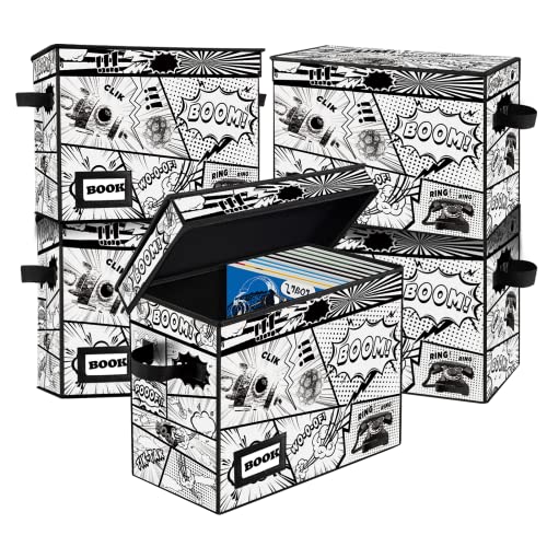 YNSZAS 5 Pack Collection Comic Book Storage Boxes, Protector Organizer 15.8" X 7.8" X 11.8" Collapsible Short Box Holds 160-180 Comic Book Heavy Duty Bin Container Holder Shelf