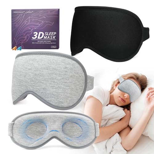 3D Sleep Mask for Men Women 2 Pack, Blackout Eye Mask for Sleeping Eye Mask for Side Sleeper, Memory Foam Adjustable&Washable, Airplane Travel Essentials Couples Yoga Meditation Office Black & Gray