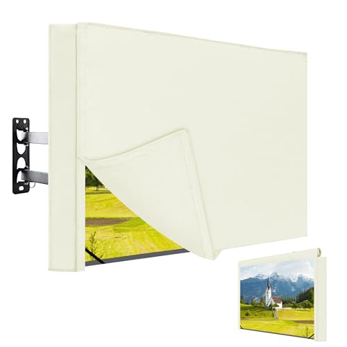 Easy-Going Outdoor TV Cover with Roll Up Front Flat - Waterproof & Weatherproof for 65-70 inch Flat Screen TV, Beige