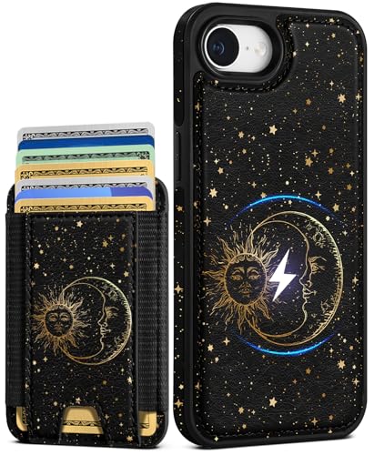 Shorogyt for iPhone 16e Cute Kawaii Leather Phone Case - Compatible with Magsafe Wallet Magnetic Credit Card Holder Fashion Sun Moon Design Phone Cover for Women Girls, Fits 7 Cards