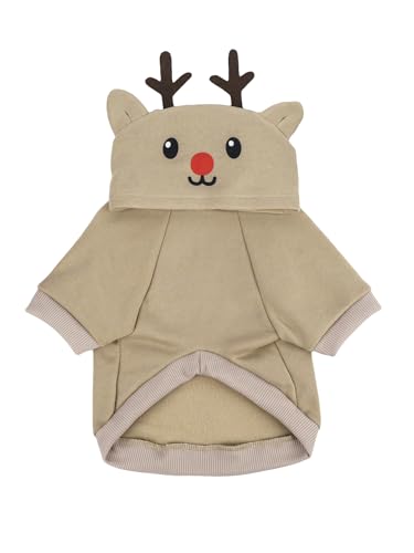 QWINEE Deer Design Dog Hoodie Dog Costume Holiday Halloween Costume Dog Shirt Sweatshirt Dog Clothes for Cat Puppy Small Medium Dogs Khaki S