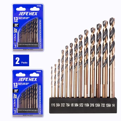 JEFE HEX 13set*2packs High Speed Steel with 3-Flat Shanks, Black & Gold Coated, General Purpose Jobber Length Twist Drill Bit1