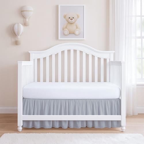 Rajlinen Ruffled Crib Bed Skirt, Microfiber, Dust Ruffle with Split Corners, 14" Drop, Nursery Toddler Bedding for Baby Boys or Girls, Light Grey