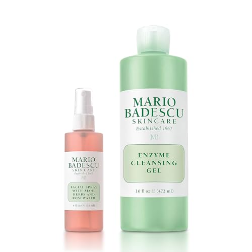 Mario Badescu Rose Water Facial Spray & Enzyme Cleansing Gel Bundle | Hydrating Rose Water Face Mist + Oil-Free Cleanser with Grapefruit & Papaya Extract | Rejuvenates, Clarifies & Removes Excess Oil