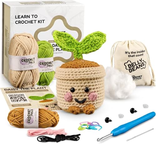 JOYBERRI Crochet Kit for Beginners - Beginner Crochet Kit for Adults and Kids - Learn to Make Amigurumi Animals with Step by Step Videos - All Materials Included (Daisy The Plant)