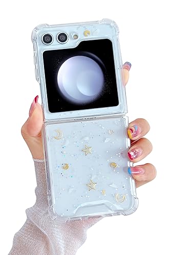 MUNDULEA Compatible with Samsung Galaxy Flip 5 Clear Case Star Women Girls Soft TPU Sparkle Glitter Anti-Scratch Shockproof Protective Phone Cover for Galaxy Z Flip 5 (Gold Clear)