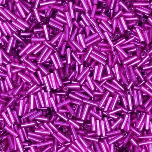 Yholin 4000pcs PinkPurple Bugle Beads Bulk -Tube Long Bead,Embroidery Beads for Jewelry Making, Bracelet,Necklaces Supplies,Craft Supplies(7x2mm)