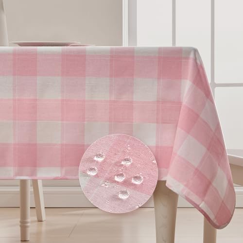 BALCONY & FALCON Rectangle Table Cloth – Waterproof, Wrinkle-Resistant Farmhouse Tablecloth for Dining, Kitchen, Party Decorations, Baby Shower, Valentine and Spring Gatherings (Pink, 55" x 71")