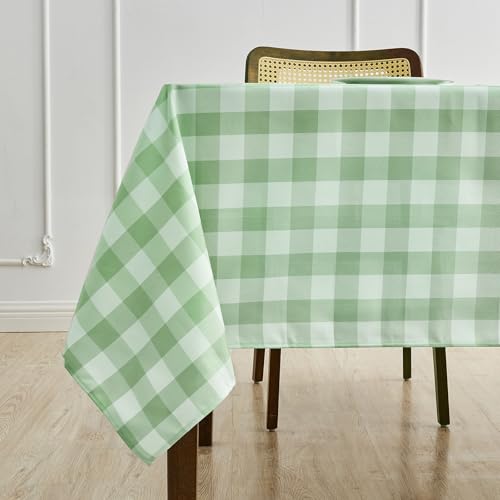BALCONY & FALCON Gingham Table Cloth Rectangle – Machine Washable Wrinkle-Free Buffalo Checkered Tablecloth for 6ft 8ft Tables, Outdoor Picnic, Party, Kitchen Dining Decor (Green White, 57x118 Inch)