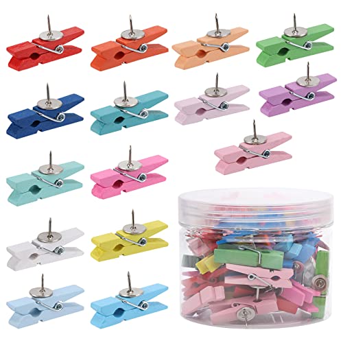 50Pcs Wooden Clips Push Pins Tacks for Cork Board Artwork for Crafts Arts Projects Photo Supplies(Colorful)