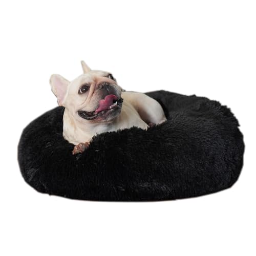 Black Dog Bed Washable,Fluffy Dog Beds for Small Dogs 19 inches Donut Soft Small Pet Bed,Calming Anti Anxiety Round Fits up to 10 lbs Warm Comfort Pets Beds for Puppy Dogs Indoor