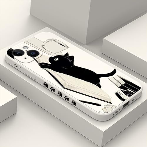 LEECG for iPhone 14 Plus Case Flower Creativity Pattern Design Soft Silicone Slim Shockproof Phone Cover for iPhone 14 Plus, 6.7 inch-Cat White