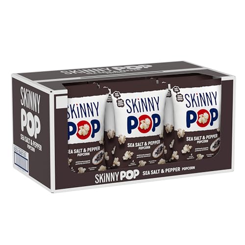 SkinnyPop Popcorn, Sea Salt & Pepper, Whole Grain, Dairy-Free Snack, 4.4oz Bags (12ct)