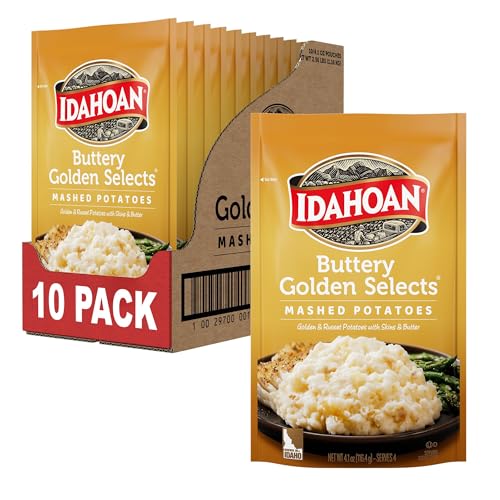 Idahoan Buttery Golden Selects Mashed Potatoes, Naturally Gluten-Free, 100% Real Idaho Potatoes, 4 servings per bag, 4.1 ounce (Pack of 10)