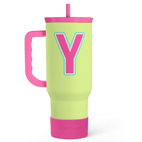 SANDJEST Monogrammed Tumbler with Handle 40oz, Letter Y Tumblers Coffee Travel Cup with Straw, Personalized Monogram Initial Gifts for Women Girls, Customized Gifts for Christmas Birthday Mothers Day