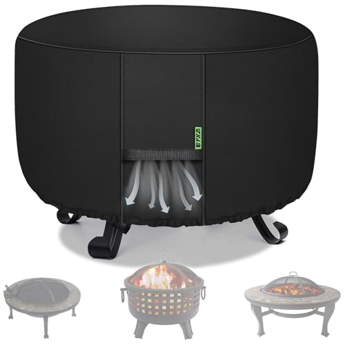 GYXZ Fire Pit Cover Round ( 36” Dia X 20”H ) Heavy Duty 600D Polyester with PVC Coating Material, Weather Resistant and Waterproof, Fire Pit/Bowl Cover, Black