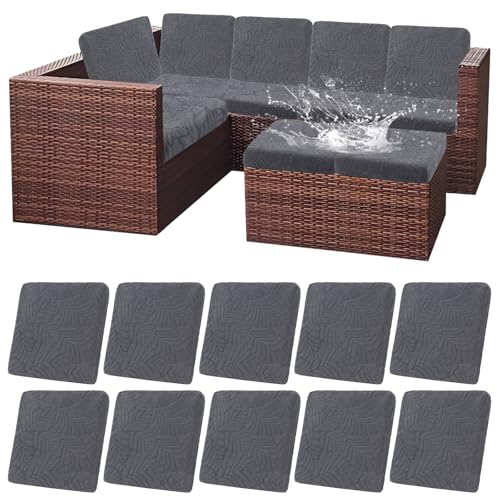 HEBE Outdoor Patio Cushion Covers Set of 10 Waterproof Stretch Seat Cushion Cover for Patio Furniture Clearance Outdoor Sofa Cushion Cover Replacement Couch Slipcovers Chair Seat Cover