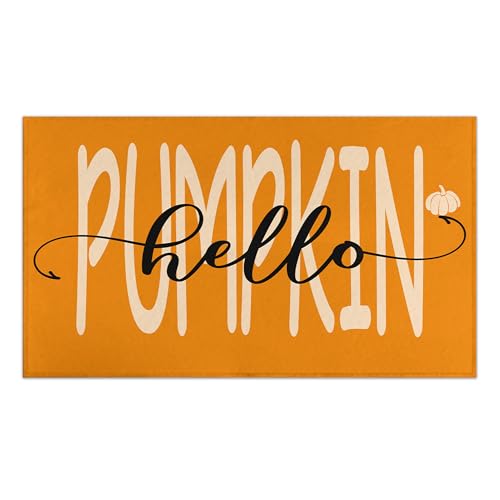 Fall Door Mat Outdoor Entrance Rug Non-Slip Hello Pumpkin Front Door Mats Fall Decorations for Home Low-Profile Autumn Welcome Doormat for Indoor Outdoor Thanksgiving Decor 17"x30"