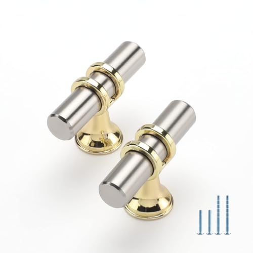 Rergy Cabinet Handles Drawer Pulls and Knobs, 16Pack Brushed Nickel and Gold Single Hole, Kitchen Hardware for Dresser Handle Zinc Alloy Furniture Pull
