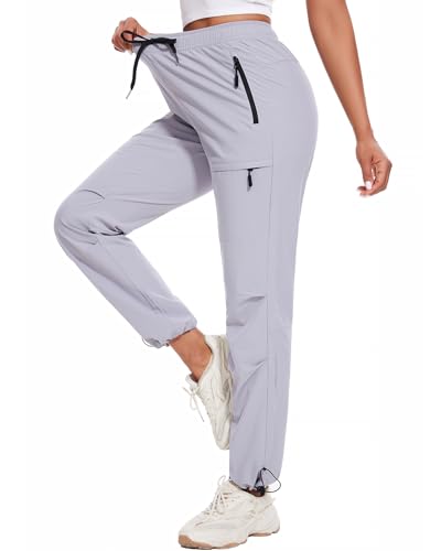 LadyJoy Hiking Pants Women Cargo Joggers for Women Tall Summer Golf Travel Jogging Work Pants Waterproof Lightweight Elastic Waist Drawstring Quick Dry with Pockets Outdoor Light Grey L 31.5''