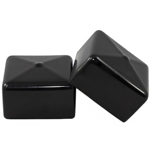 Prescott Plastics 2-Inch (50.8mm) Square Rubber Hole Plugs, Flexible Black Vinyl End Caps for Metal Tubing and Fences, Rubber Caps for Glide Protection from Chairs and Furniture, Made in USA - 4 Pack