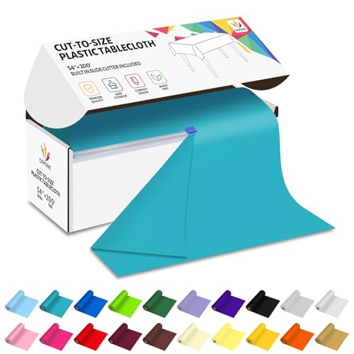CXPSINC 54 Inch X 200 Feet Plastic Table Cover Roll Disposable Tablecloth with Slide Cutter for All Type/Shape Tables | Picnic, Party, Banquet, Birthdays, Weddings (Turquoise)