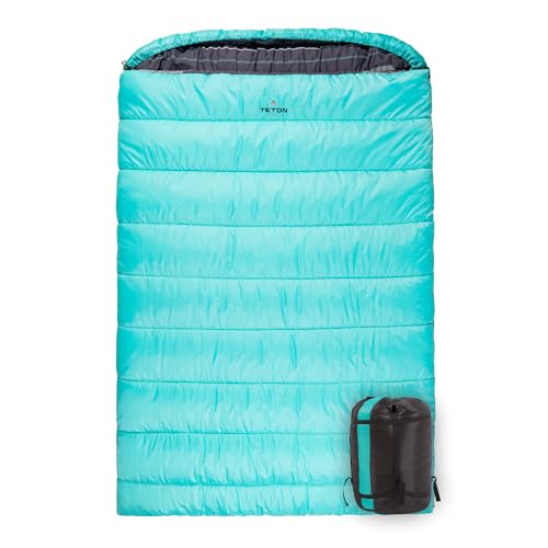 TETON Sports 2-Person Mammoth 0 Degree Double Winter Sleeping Bag - Queen-Size Cold-Weather Sleeping Bag with Full-Length Zippers - Double-Layer Camping Accessory for Tent Campers, 0˚F, Teal Taffeta