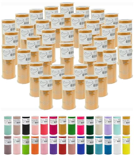 Expo International Decorative Matte Tulle, Lightweight Polyester Tulle Fabric for Tutus, Costumes, and Party Decorations, Washable, Easy-to-Use, 6 Inch x 25 Yards, Gold, Pack of 36