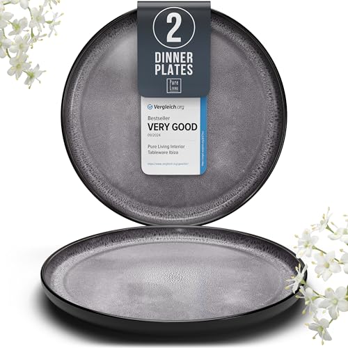 PURE LIVING INTERIOR DESIGN Stoneware Dinner Plates Set of 2, Large Dark Gray Tableware, Stylish & Durable, Dishwasher, Microwave & Scratch-Resistant
