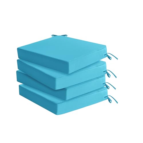 Summsun Outdoor Chair Cushions Set of 4: Waterproof & Color Fastness Seat Cushion for Patio Furniture - 22 x 22 x 3 Inch Chair Pads with Ties and Hidden Zipper - Patio Chair Cushion Replacement, Teal