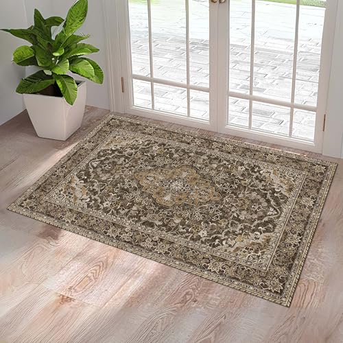 Washable Entryway Rug 3x5 | Non Slip Rug Runners for Hallways, Entryways, Kitchens, Bathrooms, Bedrooms | Ultra-Soft Flannel Carpet Kitchen Rug with Rubber Backing (Dark Sage, 3x5)