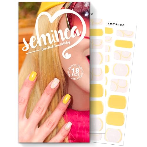 SEMINCA Semi Cured Gel Nail Strips-Salon Quality Semi-Cured Gel Press On Nails Stickers Strengthening Quick DIY Nail Art Manicure Kits for Women at Home 14-Day Wear(Lemon Summer)