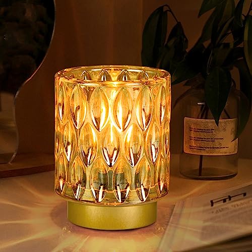 Battery Operated Table Lamps Timer, Mini Crystal Lamp for Area No Plug, Cordless Lamp with LED Bulb for Power Outage, Decorative Lamps for Tabletop/Corner/Entryway/Stairway/Bathroom/Fireplace (Amber)
