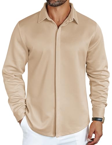 COOFANDY Mens Wrinkle Free Button Down Shirts Fitted Dress Shirts Muscle Fit Shirts Khaki