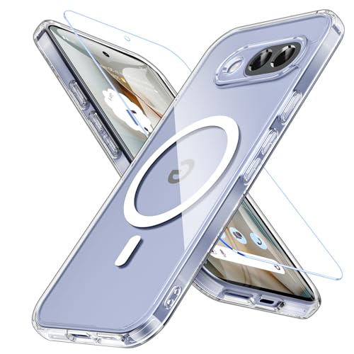 Cum2giff for Google Pixel 9A Case, Compatible with MagSafe, Transparent Slim Shockproof Cover with Screen Protector, Anti-Fingerprint and Anti-Scratch Bumper for Pixel 9A, Clear