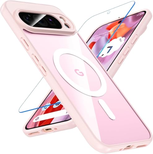 CX-JKCS-pixel9pro for Google Pixel 9 Pro XL Case for MagSafe with Screen Protector, [Transparent Hard PC Back & Soft TPU Bumper], Shockproof Anti-Scratch Slim Cover Phone Case for Pixel 9 Pro XL,Pink