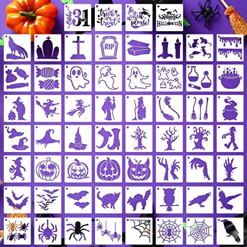Halloween Stencils for Painting on Wood 3” Small Halloween Stencil Reusable Bat/Witch/Spider/Ghost Drawing Templates for Window Crafts Decor