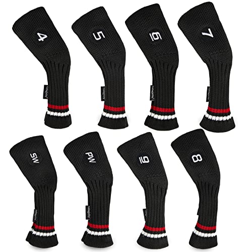 Yueaglesky Golf Club Head Cover Set, 8 Pieces, Black and Red, Polyester Knitted, Suitable for Men and Women, Fits Clubs 4-9, PW, and SW
