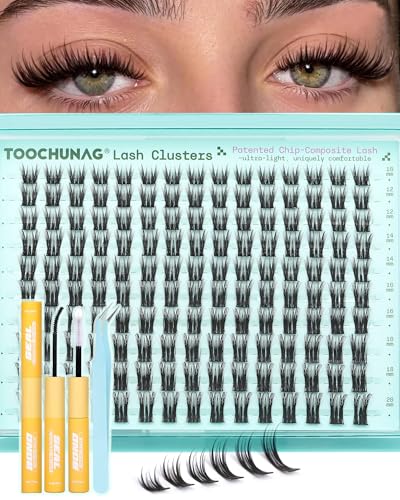Wispy Lash Clusters Kit Natural Eyelash Clusters Kit 10-20mm Volume Individual Lashes Extension Kit 150pcs D Curly Soft Lightweight Cluster Eyelash Extensions with Lash Bond and Seal by TOOCHUNAG