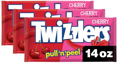 TWIZZLERS PULL 'N' PEEL Cherry Flavored Licorice Style, Low Fat Candy Bag, 14 oz (Pack of 3)
