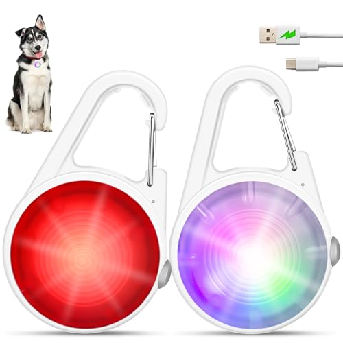 Dog Lights for Night Walking, 4 Modes IP68 Waterproof Dog Collar Lights Clip on, High Capacity Rechargeable Pet Accessories for Climbing, Running, Camping, 2 Packs (White)